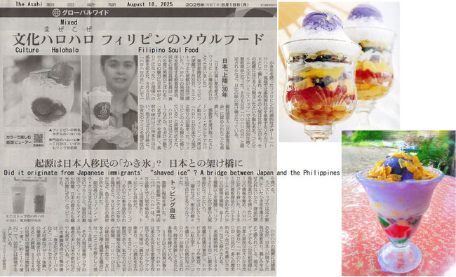 As mentioned in the attached newspaper article on August 18th, it is a traditional Filipino dessert consisting of shaved ice mixed with various sweet ingredients. The name comes from the Tagalog word "halo," which means "mix." It is still one of my favorites.