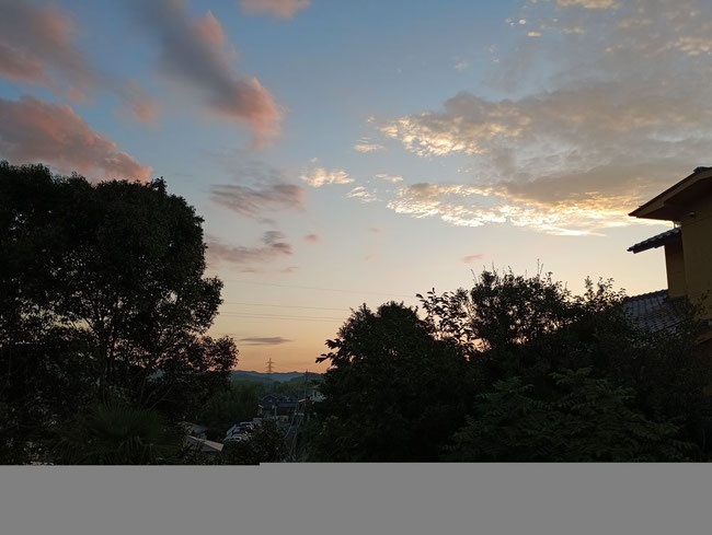 These were a scene in the early morning and the Formosa lily (Takasago lily) in the daytime from our garden during the prolonged heatwave a few days ago.