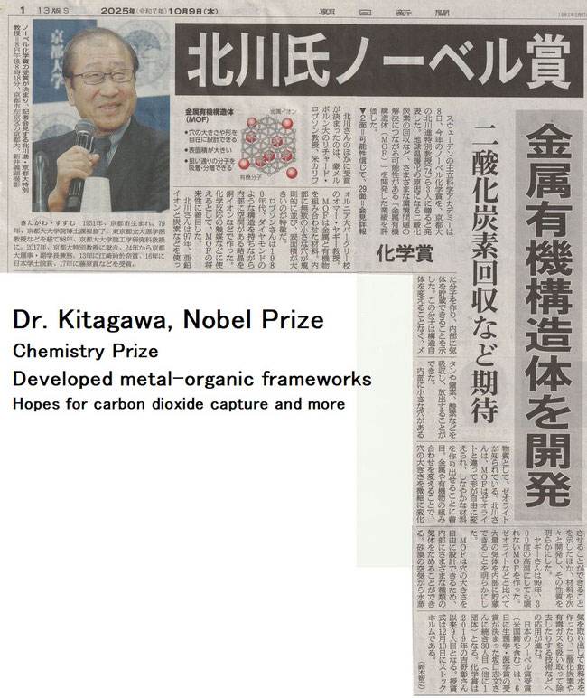 国内的には、今年は我が国、日本から二人も同時にノーベル賞受賞者が出て、日本全体でこれ以上の喜びはありません。