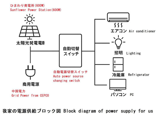 ある秋の晴天日、小さな「ひまわり発電所」の発電・蓄電・給電: